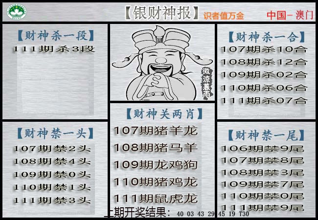 111期: 澳门六合皇彩圖信封【绿财神报】每期自动更新